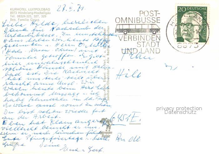 72767986 alte Postkarte Hindelang Kurhotel Luitpoldbad postalisch gelaufen Erhaltung siehe scans [WerneD78] KatCode: 11110009780123