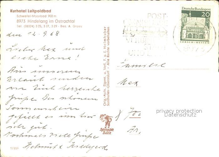 72513243 alte Postkarte Hindelang Kurhotel Luitpoldbad postalisch gelaufen Erhaltung siehe scans KatCode: 11110009780123