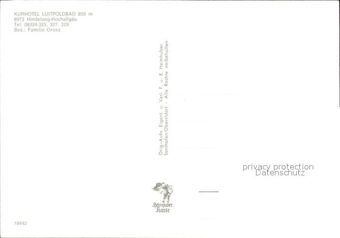 72406167 Hindelang Kurhotel Luitpoldbad postalisch nicht gelaufen Erhaltung siehe scans KatCode: 11110009780123