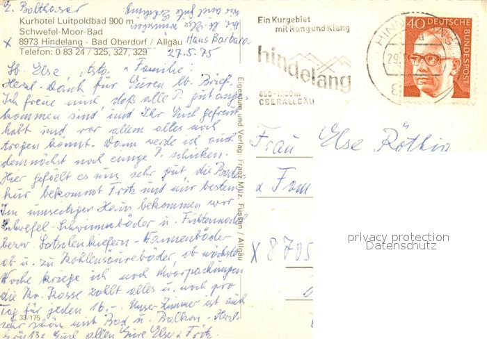 73664639 alte Postkarte Hindelang Kurhotel Luitpoldbad postalisch gelaufen Erhaltung siehe scans [WerneD78] KatCode: 11110009780123