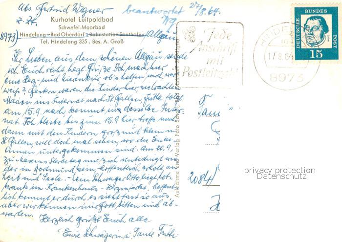 73652535 alte Postkarte Hindelang Kurhotel Luitpoldbad postalisch gelaufen Erhaltung siehe scans [WerneD78] KatCode: 11110009780123