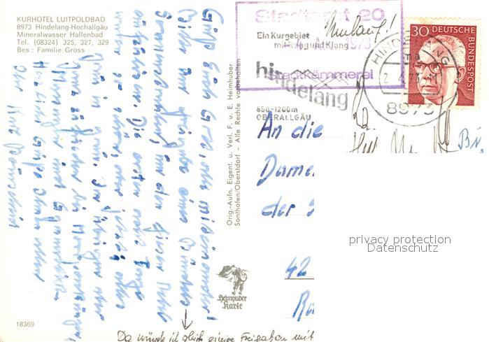 72971308 alte Postkarte Hindelang Kurhotel Luitpoldbad postalisch gelaufen Erhaltung siehe scans [PaolaD17] KatCode: 11110009780123