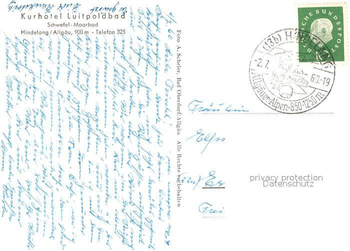 73135730 alte Postkarte Hindelang Kurhotel Luitpoldbad Schwefel Moorbad postalisch gelaufen Erhaltung siehe scans [FriedD77] KatCode: 11110009780123