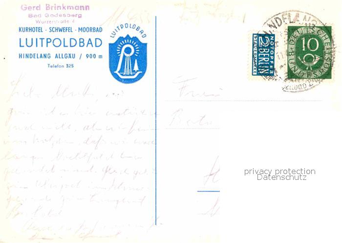 72846241 alte Postkarte Hindelang Kurhotel Schwefel Moorbad Luitpoldbad Skulptur Alpenpanorama postalisch gelaufen Erhaltung siehe scans [FriedD77] KatCode: 11110009780123