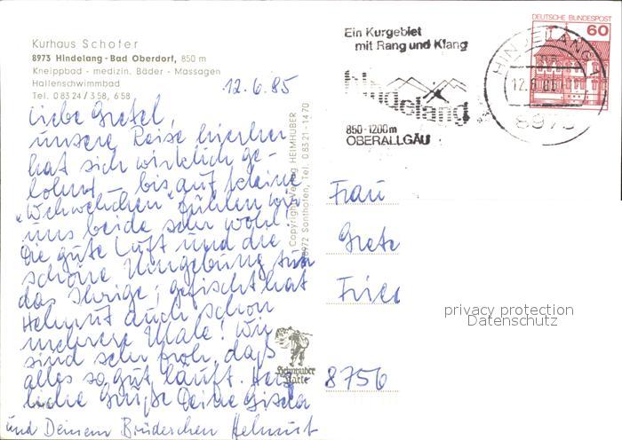 71926652 alte Postkarte Hindelang Mht Kurhaus Schofer postalisch gelaufen Erhaltung siehe scans KatCode: 11110009780123