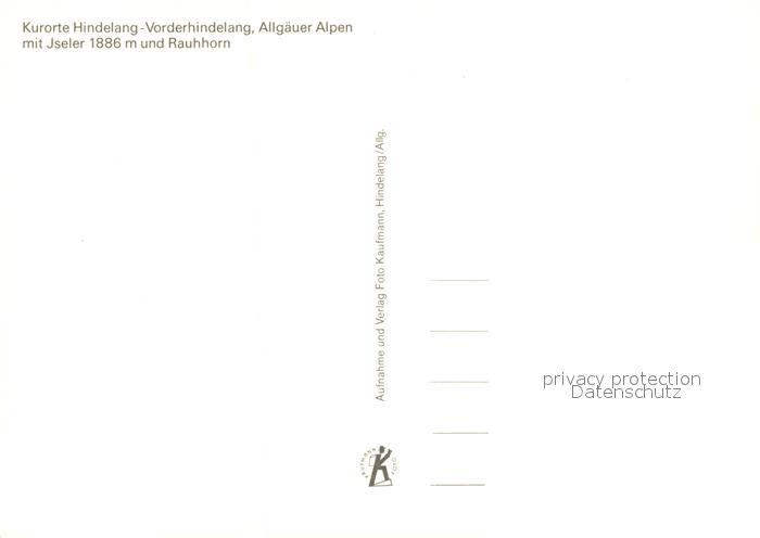 73252457 Hindelang mit Iseler und Rauhhorn postalisch nicht gelaufen Erhaltung siehe scans [WerneD78] KatCode: 11110009780123