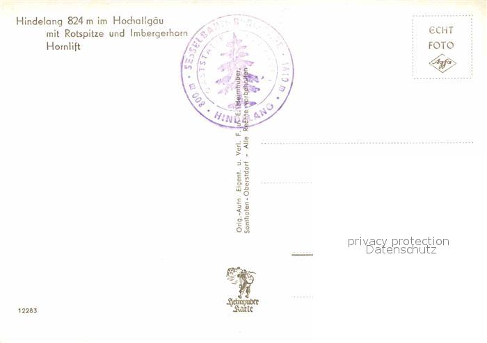 72772508 Hindelang mit Rotspitze und Imbergerhorn und Hornlift postalisch nicht gelaufen Erhaltung siehe scans [WerneD78] KatCode: 11110009780123