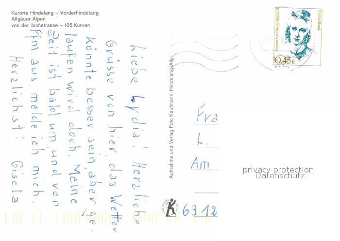 72756677 alte Postkarte Hindelang mit Vorderhindelang Allgaeuer Alpen Blick von der Jochstrasse postalisch gelaufen Erhaltung siehe scans [WerneD78] KatCode: 11110009780123