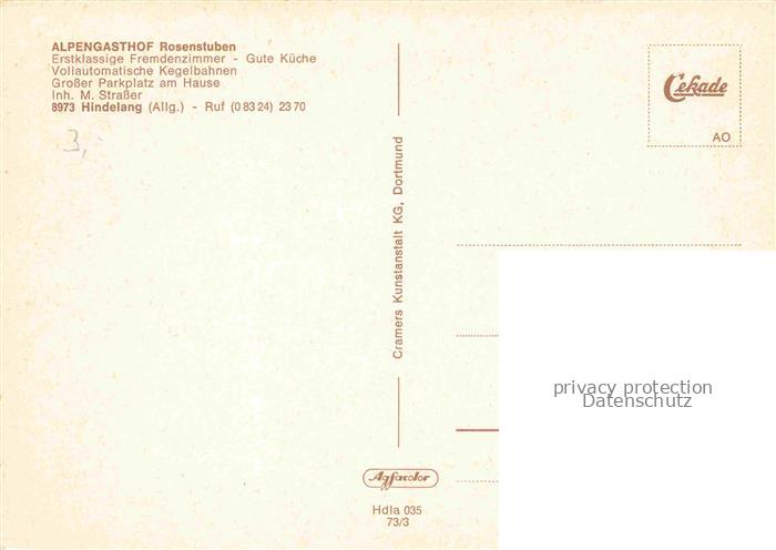 74043205 HINDELANG Oberallgaeu Alpengasthof Rosenstuben postalisch nicht gelaufen Erhaltung siehe scans [WerneD78] KatCode: 11110009780123