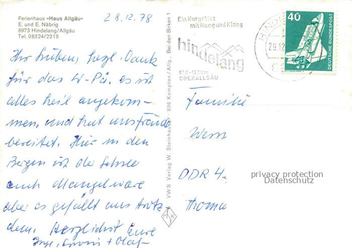 74043374 alte Postkarte HINDELANG Oberallgaeu Ferienhaus Haus Allgaeu Winterlandschaft postalisch gelaufen Erhaltung siehe scans [FriedD77] KatCode: 11110009780123