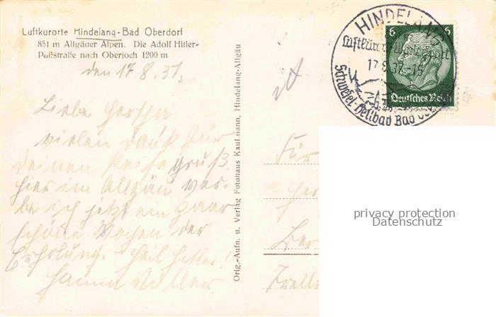 74026485 alte Postkarte HINDELANG Oberallgaeu Panorama Luftkurort Allgaeuer Alpen postalisch gelaufen Erhaltung siehe scans [FriedD77] KatCode: 11110009780123