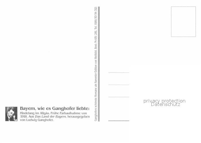 72694643 Hindelang Panorama Alpen Serie Das Land der Bayern Ludwig Ganghofer postalisch nicht gelaufen Erhaltung siehe scans [FriedD77] KatCode: 11110009780123