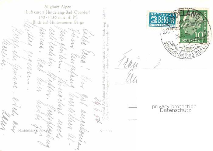 72751601 alte Postkarte Hindelang Panorama Hintersteiner Berge postalisch gelaufen Erhaltung siehe scans [AndreD76] KatCode: 11110009780123
