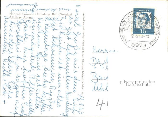 71942180 alte Postkarte Hindelang Panorama Hoehenluftkurort mit Allgaeuer Alpen postalisch gelaufen Erhaltung siehe scans KatCode: 11110009780123