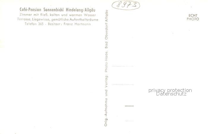 42963127 Hindelang Pension Sonnenbichl postalisch nicht gelaufen Erhaltung siehe scans [AndreD76] KatCode: 11110009780123