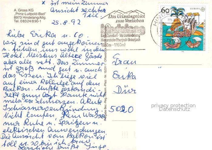 72781970 alte Postkarte Hindelang Prinz Luitpold Bad Fliegeraufnahme postalisch gelaufen Erhaltung siehe scans [FriedD77] KatCode: 11110009780123