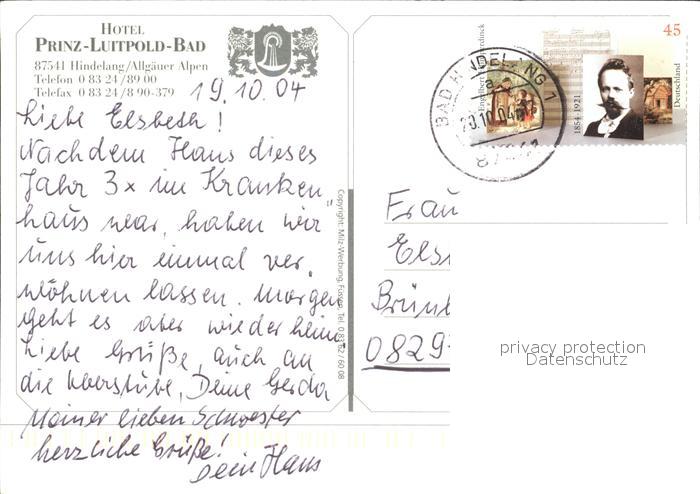 72376166 alte Postkarte Hindelang Prinz Luitpold Bad Hotel Alpen postalisch gelaufen Erhaltung siehe scans KatCode: 11110009780123