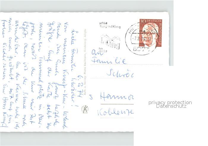 71900395 alte Postkarte Hindelang Skigebiet Liftkarte postalisch gelaufen KatCode: 11110009780123