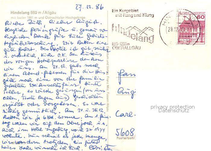 73143677 alte Postkarte Hindelang Winterpanorama mit Iseler und Ostrachtaler Hochgebirge postalisch gelaufen Erhaltung siehe scans [FriedD77] KatCode: 11110009780123