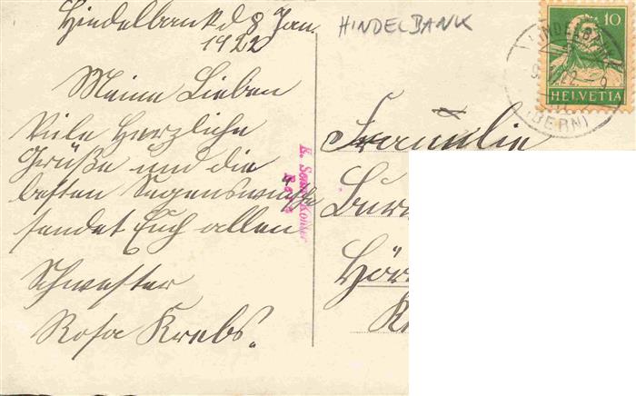 13975010 alte Postkarte Hindelbank BE Villa postalisch gelaufen Erhaltung siehe scans [FriedD77] KatCode: 11470060150016