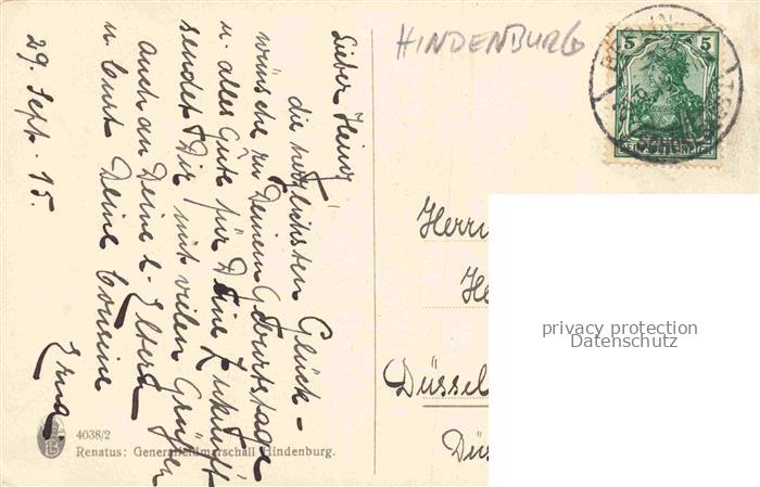 74035359 alte Postkarte HINDENBURG Paul von Politik Renatus Genegalfeldmarschall postalisch gelaufen Erhaltung siehe scans [SanaeD93] KatCode: 22420000000600