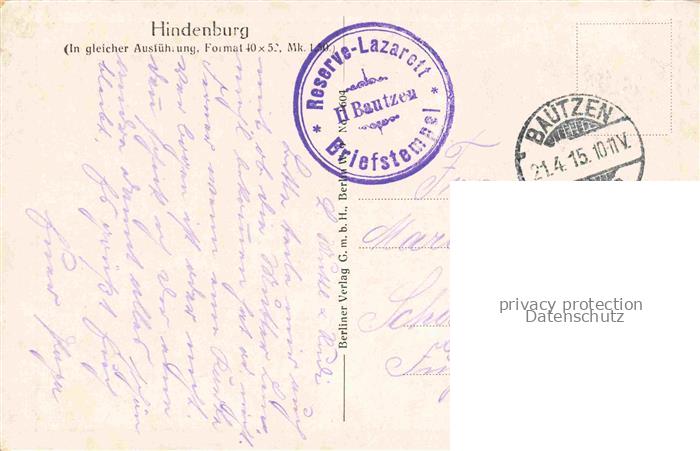 74034471 alte Postkarte HINDENBURG Paul von Politik S. Hornert Generalfeldmarschall postalisch gelaufen Erhaltung siehe scans [SanaeD93] KatCode: 22420000000600