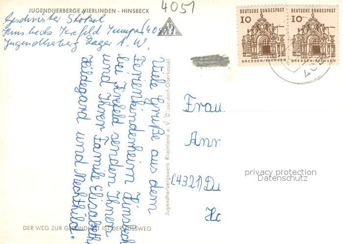 73708963 alte Postkarte Hinsbeck Jugendherberge Vierlinden Aussenansicht postalisch gelaufen Erhaltung siehe scans [LiesaD40] KatCode: 11110005166016