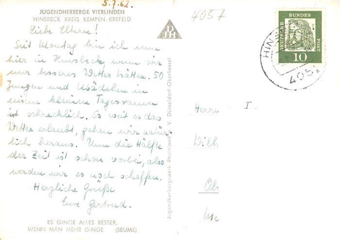 73873771 alte Postkarte Hinsbeck Nettetal Jugendherberge Vierlinden postalisch gelaufen Erhaltung siehe scans [FriedD77] KatCode: 11110005166016