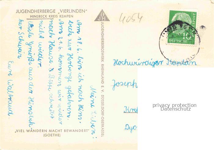 74020577 alte Postkarte Hinsbeck Nettetal Viersen NRW Jugendherberge Vierlinden postalisch gelaufen Erhaltung siehe scans [WerneD78] KatCode: 11110005166016
