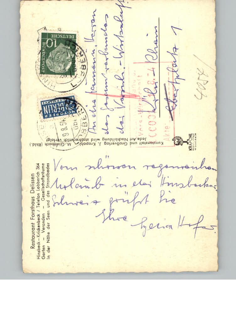 31132919 Hinsbeck Restaurant Forsthaus Delissen postalisch nicht gelaufen KatCode: 11110005166016