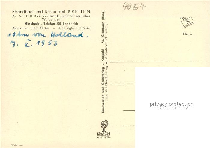 73708967 Hinsbeck Strandbad und Restaurant Kreiten am Krickenbecker See postalisch nicht gelaufen Erhaltung siehe scans [LiesaD40] KatCode: 11110005166016