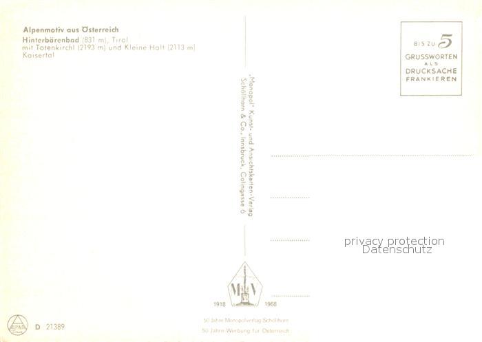 73160463 Hinterbaerenbad mit Totenkirchl Kaisertal Kleine-Halt postalisch nicht gelaufen Erhaltung siehe scans [LiesaD40] KatCode: 11390332070368