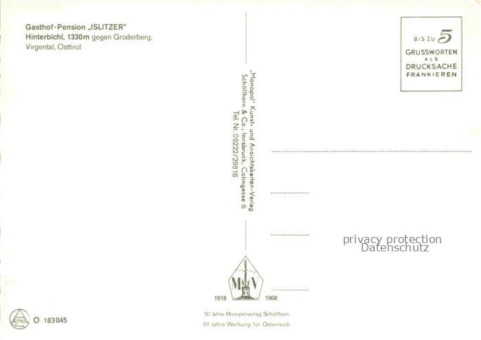 74100785 Hinterbichl 1300m Praegraten Osttirol AT Gasthof Pension Islitzer Blick gegen Groderberg Virgental postalisch nicht gelaufen Erhaltung siehe scans [FriedD77] KatCode: 11390333070723