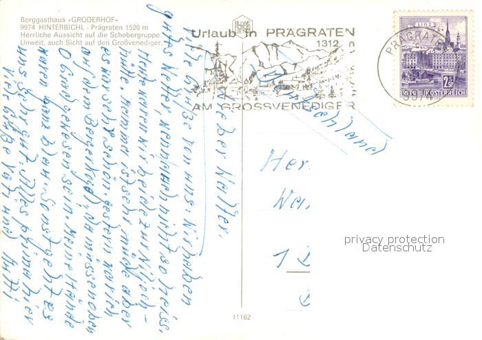 73712952 alte Postkarte Hinterbichl Praegraten Berggasthaus Groderhof Gaststube Panorama postalisch gelaufen Erhaltung siehe scans [WerneD78] KatCode: 11390333070723