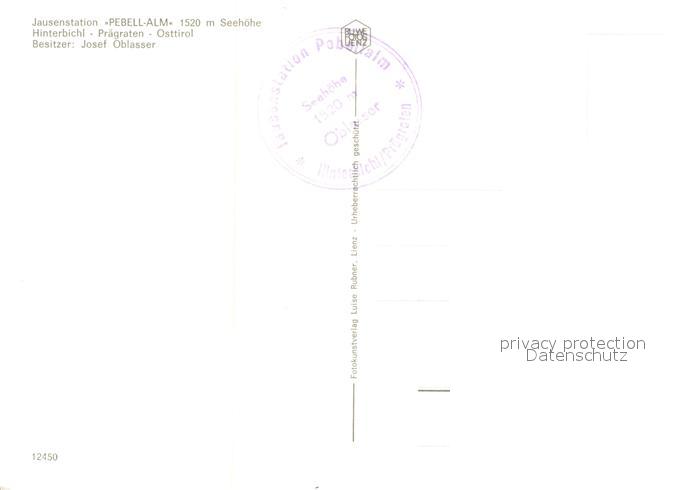 73363046 Hinterbichl Praegraten Jausenstation Pebell Alm Schlucht Bergbach Wasserfall postalisch nicht gelaufen Erhaltung siehe scans [FriedD77] KatCode: 11390333070723