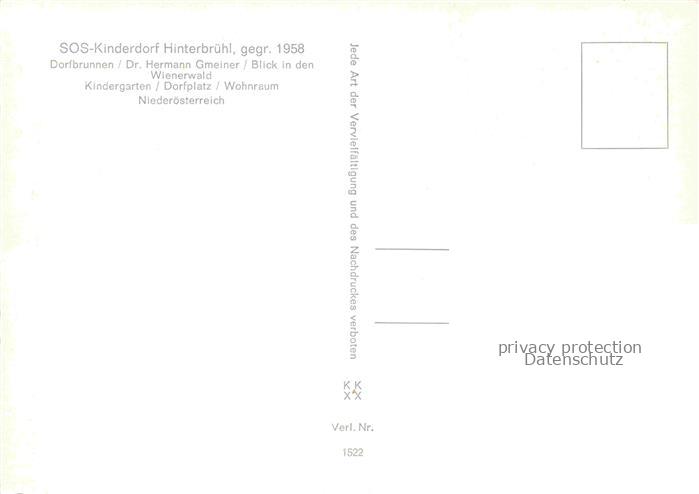 74023740 Hinterbruehl Niederoesterreich AT SOS Kinderdorf Dorfbrunnen Blick in den Wiener Wald postalisch nicht gelaufen Erhaltung siehe scans [FriedD77] KatCode: 11390127031712