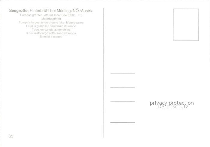 72400202 Hinterbruehl Niederoesterreich Seegrotte Querschnitt postalisch nicht gelaufen Erhaltung siehe scans KatCode: 11390127031712