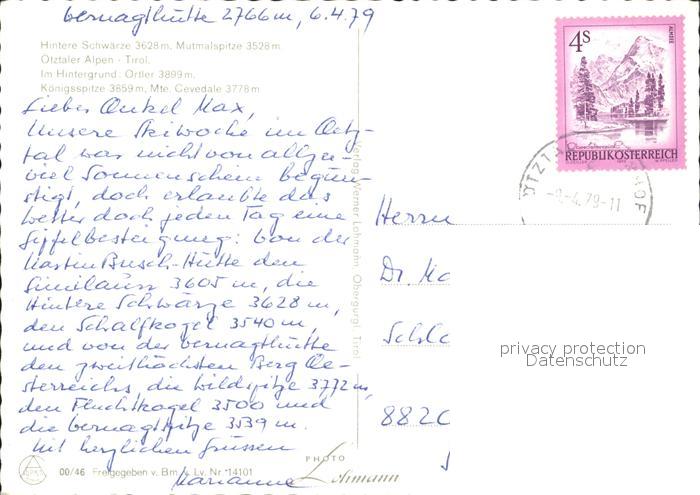 72280574 alte Postkarte Hintere Schwaerze Fliegeraufnahme Otztaler Alpen postalisch gelaufen Erhaltung siehe scans KatCode: 11390334070208