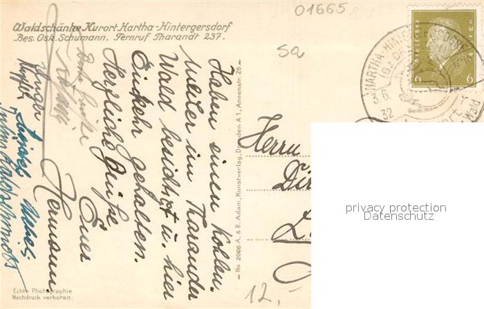 43017616 alte Postkarte Hintergersdorf Waldschaenke postalisch gelaufen Erhaltung siehe scans [FriedD77] KatCode: 11110014290440