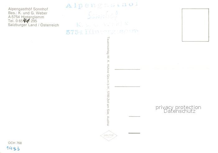 73613061 Hinterglemm Saalbach Alpengasthof Sonnhof Restaurant Allgaeuer Alpen postalisch nicht gelaufen Erhaltung siehe scans [FriedD77] KatCode: 11390