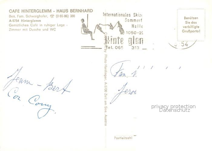 73591062 alte Postkarte Hinterglemm Saalbach Cafe Hinterklemm Haus Bernhard postalisch gelaufen Erhaltung siehe scans [KathaD81] KatCode: 11390