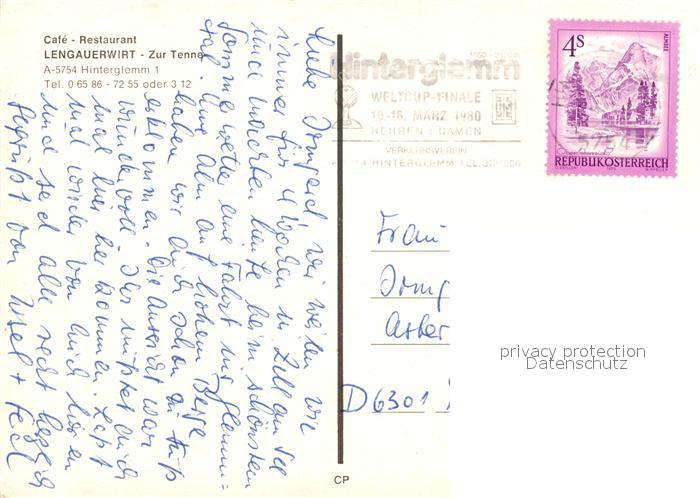 73592716 alte Postkarte Hinterglemm Saalbach Cafe Restaurant Lengauerwirt Zur Tenne postalisch gelaufen Erhaltung siehe scans [KathaD81] KatCode: 11390