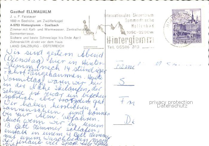 72438213 alte Postkarte Hinterglemm Saalbach Gasthof Ellmauaml postalisch gelaufen Erhaltung siehe scans KatCode: 11390