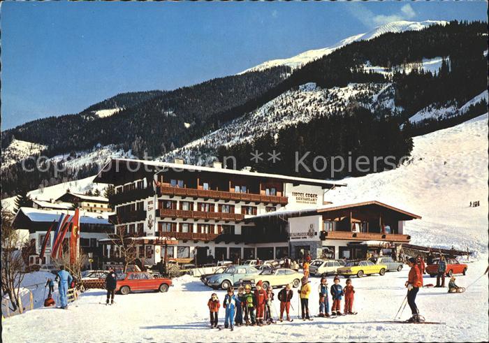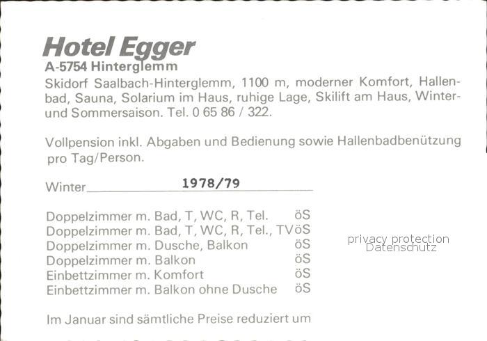 72291594 Hinterglemm Saalbach Hotel Egger Skischule postalisch nicht gelaufen Werbekarte (keine Postkarte) Erhaltung siehe scans KatCode: 11390