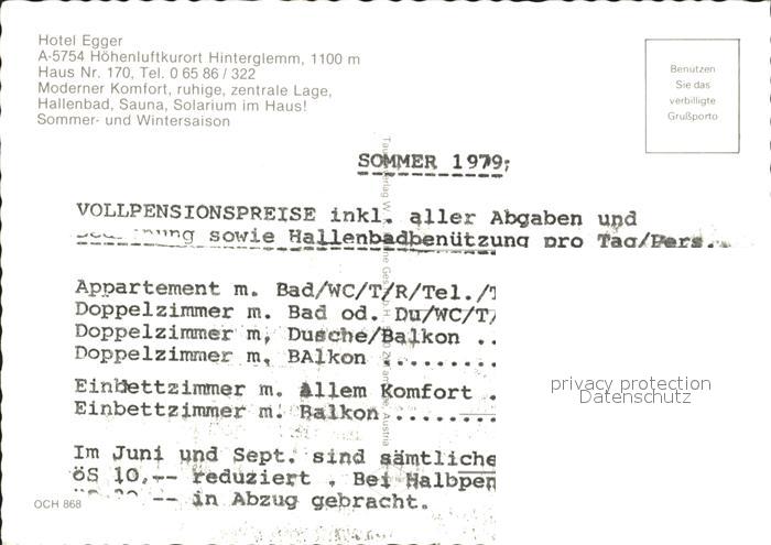 72291595 Hinterglemm Saalbach Hotel Egger postalisch nicht gelaufen Erhaltung siehe scans KatCode: 11390