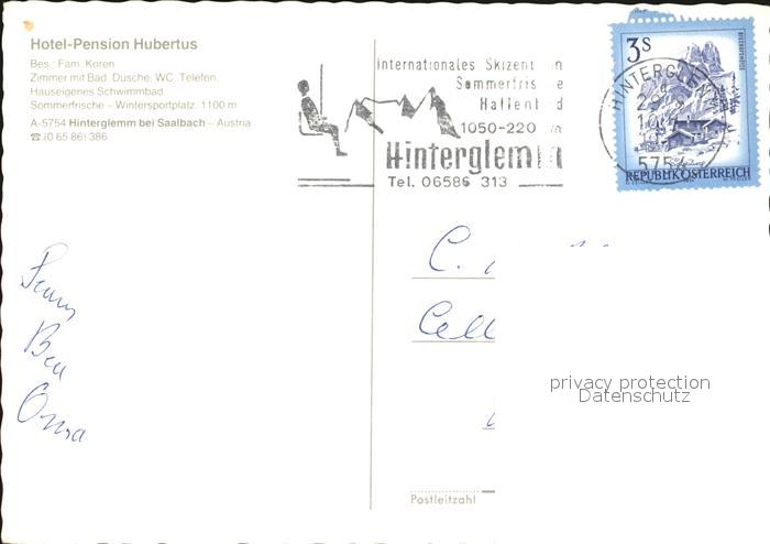 72497811 alte Postkarte Hinterglemm Saalbach Hotel Hubertus postalisch gelaufen Erhaltung siehe scans KatCode: 11390
