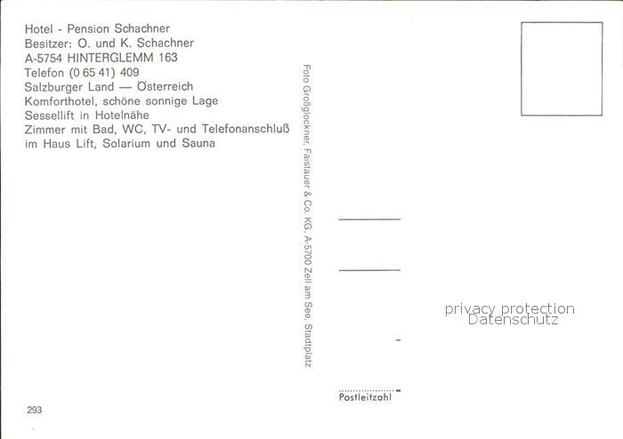 72376674 Hinterglemm Saalbach Hotel Pension Schachner postalisch nicht gelaufen Erhaltung siehe scans KatCode: 11390