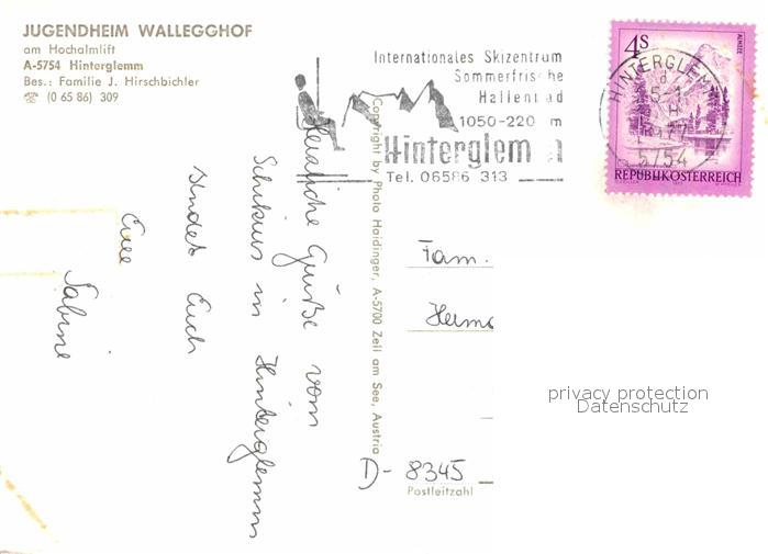72654219 alte Postkarte Hinterglemm Saalbach Jugendheim Wallegghof am Hochalmlift postalisch gelaufen Erhaltung siehe scans [WerneD78] KatCode: 11390