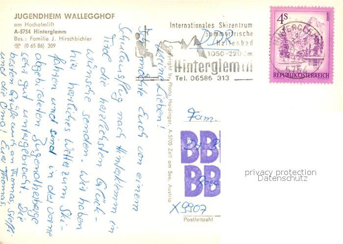 73518719 alte Postkarte Hinterglemm Saalbach Jugendheim Wallegghof Winter postalisch gelaufen Erhaltung siehe scans [KathaD81] KatCode: 11390