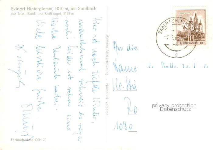 73861818 alte Postkarte Hinterglemm Saalbach mit Trist Saal und Staffkogel postalisch gelaufen Erhaltung siehe scans [WerneD78] KatCode: 11390